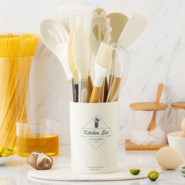 12-Piece White Silicone Cooking Utensil Set with Heat-Resistant Handles